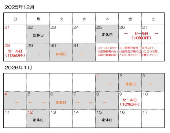 ※毎月1回のセール日で焙煎豆全品「10%OFF」となります